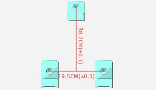 Uchwyt składający się z 3 elementów ABS i 2 metalowych wzmocnień mocowanych do ściany.