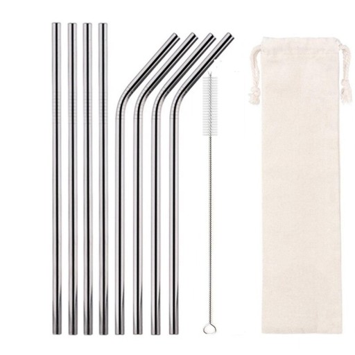 METALOWE słomki SREBRNE rurki do napojów do picia 10 elementów, czyścik