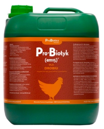 Pro-Biotyk (em15)® dla drobiu to Mieszanka Paszowa Uzupełniająca powstaje na drodze naturalnej fermentacji materiałów paszowych przy udziale szczepów probiotycznych należących do gatunków (wg EFSA/QPS): Lactobacillus acidophilus, Lactobacillus plantarum, Lactobacillus casei, Bifidobacterium bifidum, Bifidobacterium longum, Streptococcus thermophilus, Lactobacillus bulgaricus, Lactobacillus fermentum, Bifidobacterium animalis, Lactococcus lactis subsp. lactis biovar diacetylactis.