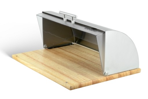 Chlebak kuchenny z deską i półprzezroczystymi drzwiczkami. Pojemnik na pieczywo doskonały do przechowywania chleba, bułek i innych wypieków. Dzięki oferowanemu chlebakowi pieczywo nie będzie się tak szybko schnąć co za tym idzie zachowa dłużej świeżość.
