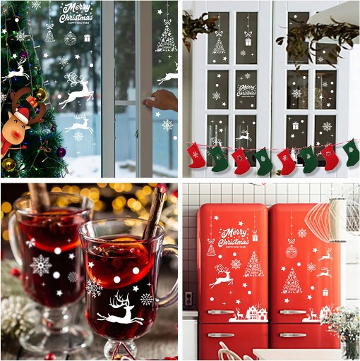 ❄️Idealna ozdoba w tradycyjne motywy, takie jak Mikołaje, śnieżynki, renifery pięknie prezentują się na oknach czy też innych powierzchniach płaskich np.: szafka, lustro, drzwi, płytki, lodówka.
