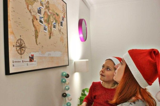 Myślę, że taka mapa, to również wspaniały pomysł na prezent. Nie tylko pięknie wygląda, ale jest niczym wehikuł czasu oraz miejsce drobnych i większych marzeń na przyszłość. Model, który zawisł w naszym salonie, świetnie prezentować będzie się również w sypialni, biurze a nawet na korytarzu. Wystarczy tylko wybrać odpowiedni wzór, rozmiar oraz kolorystykę."