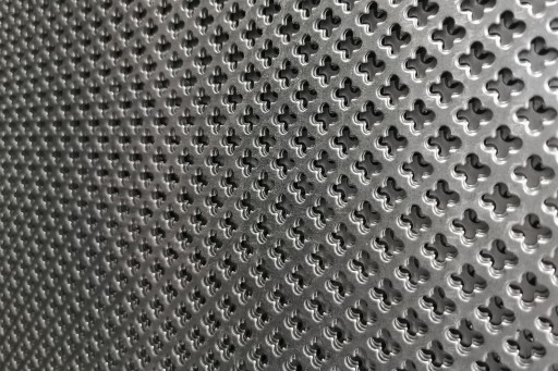 Blacha perforowana ocynkowana (ocynk ogniowy srebrny) z oczkami ozdobnymi - koniczynka w układzie mijanym.