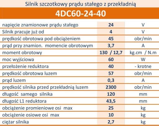 Silnik szczotkowy prądu stałego z przekładnią typ 4DC60-24-40