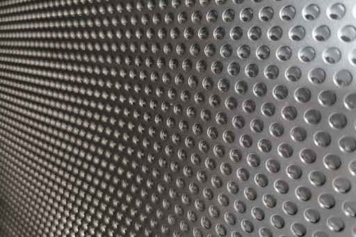 Blacha perforowana stalowa (surowa) z oczkami okrągłymi w układzie mijanym.