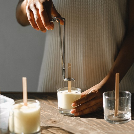 ▶ Mocowanie knota drewnianego w szklanym świeczniku jest niezwykle proste.