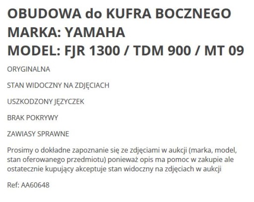 КОРПУС БОКОВОГО КОРОБКИ YAMAHA FJR 1300 TDM MT 09 KU0