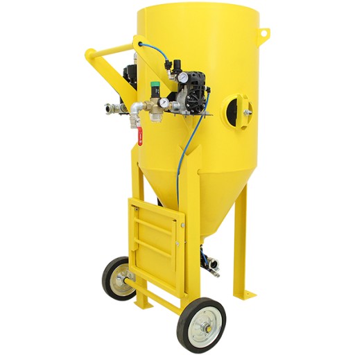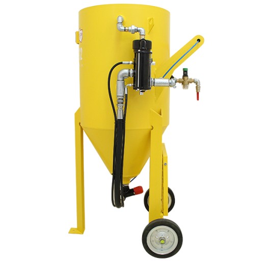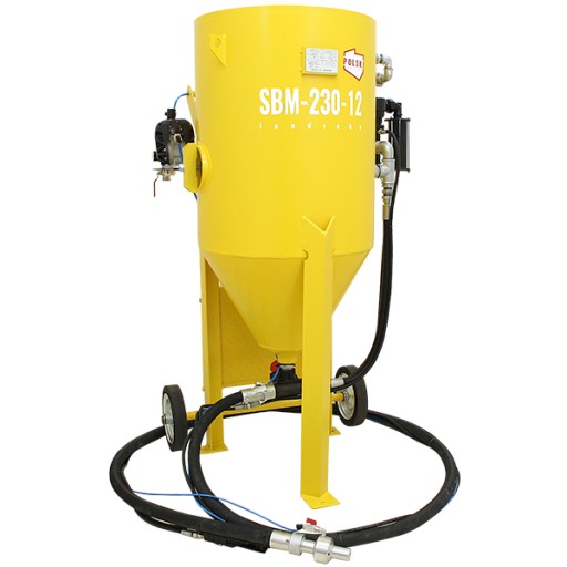 Oferowana wielofunkcyjna oczyszczarka strumieniowo-ścierna jest profesjonalnym, bezpiecznym i nowoczesnym urządzeniem polskiego producenta. Oczyszczarka wyposażona jest w zbiornik ciśnieniowy ze stożkowym dnem ułatwiającym zsuwanie się materiału oraz rewizyjnym spustem umożliwiającym szybkie opróżnienie zbiornika ze ścierniwa. Wysokiej jakości niemiecki zawór ścierniwa Macro+ charakteryzuje się ponadprzeciętną wytrzymałością mechaniczną oraz odpornością na ścieranie w porównaniu do standardowych zaworów montowanych w oczyszczarkach konkurencyjnych firm. Sterowanie oczyszczarką jest łatwe i bezpieczne, ze względu na umiejscowienie uchwytu sterującego na końcu przewodu roboczego. Niewątpliwą zaletą tego rozwiązania jest możliwość przerwania pracy urządzenia przez operatora bezpośrednio wykonującego proces piaskowania, co podyktowane jest najnowszymi przepisami BHP. Konstrukcja zaworu eliminuje potrzebę stosowania drogich membran i tłoków.