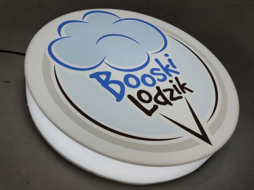 Okrągły kaseton z plexi, z podświetlanym, wyklejonym frontem i świecącymi bokami, 1 szt.