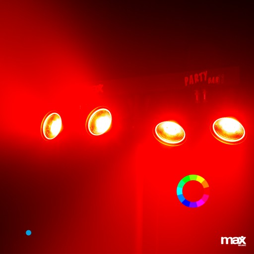 Seria MAX PartyBar składa się z szeregu kompletnych zestawów wyposażonych w spektakularne efekty świetlne LED. Wszystkie zestawy są wyposażone w diody LED o dużej intensywności w różnych kolorach. Ta seria Party Barów jest typu plug&play i może być sterowana za pomocą DMX, pilota na podczerwień lub programów automatycznych i aktywowanych dźwiękiem wybieranych z panelu sterowania z wyświetlaczem LED i przyciskami. Dołączony statyw umożliwia szybką i łatwą konfigurację.