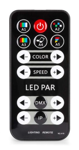 Jeśli chcesz mieć pełną kontrolę i sam decydować, co należy zrobić, DMX jest właściwą opcją. Dzięki (sprzedawanemu oddzielnie) kontrolerowi DMX możesz zdalnie zapewnić kompletne pokazy świetlne.