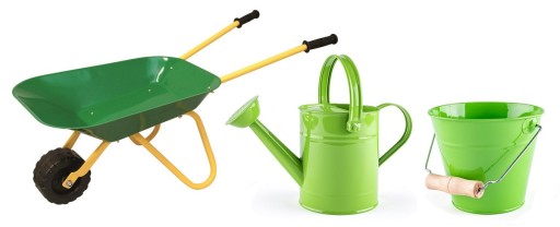 - Przepiękna zielona taczka - z początku będzie stanowić transport dla zabawek, natomiast z czasem przerodzi się w narzędzie do transportowania narzędzi, piasku, kamieni, roślin i wielu innych.