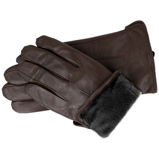 МУЖСКИЕ КОРИЧНЕВЫЕ КОЖАНЫЕ ПЕРЧАТКИ С УТЕПЛЕННЫМ ФЛИСОМ BEAR