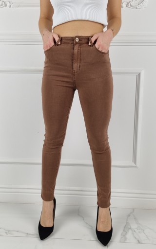 Świetne klasyczne spodnie w kolorze brązowym, posiadają wysoki stan. Świetne do sportowego obuwia ale idealnie też sprawdzą się w połączeniu ze szpilkami, dzięki swojej uniwersalności, pasują niemal do każdej stylizacji. Elastyczny materiał podkreśla kobiecą sylwetkę. Spodnie są dopasowane, rozciągają się. Podkreśl swoje kobiece kształty! Spraw, by Twój codzienny Look był niepowtarzalny. Spodnie po obu stronach posiadają kieszenie.