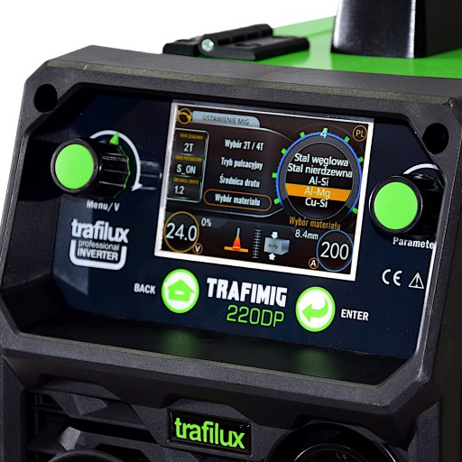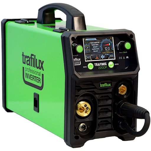 Spawarka TRAFILUX TRAFIMIG 220 to profesjonalny inwerterowy półautomat spawalniczy przeznaczony do pracy w warunkach warsztatowych dający możliwość spawania konstrukcji lekkich. Urządzenie cechuje się kompaktowymi rozmiarami oraz niską wagą wynoszącą 8kg. Rozbudowana funkcjonalność urządzenia pozwala na pracę w trybach MIG/MAG, MMA, TIG lift. Atutem konstrukcyjnym urządzenia są tranzystory wykonane w technologii IGBT. Cechą charakterystyczną dla tego typu tranzystorów jest, mniejsze zużycie energii, mniejsze zakłócenia elektromagnetyczne, przy większej wydajności oraz mocniejszym i stabilniejszym łuku spawalniczym.