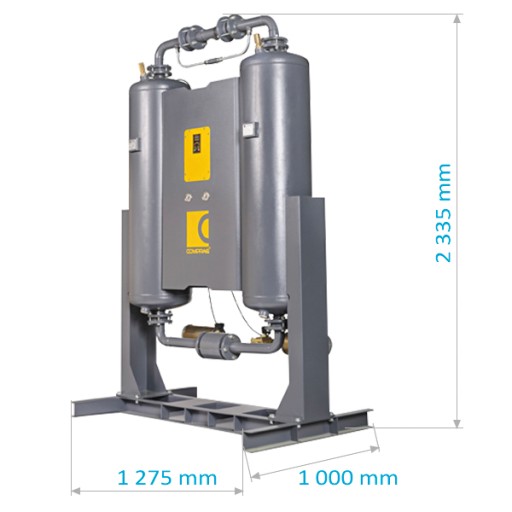 Oferowany osuszacz adsorpcyjny serii ADX ma za zadanie obniżenie temperatury sprężonego powietrza oraz usunięcie cząstek wody zawartych w przepływającym powietrzu o 99.98%. Osuszacze adsorpcyjne COMPRAG ADX pracują bazując na zmianach ciśnienia. W dwóch równolegle do siebie zamontowanych zbiornikach które wypełnione są środkiem adsorpcyjnym zachodzi kolejno w pierwszym zbiorniku osuszanie powietrza by w drugim nastąpiła regeneracja wspomnianego środka adsorpcyjnego. Do osuszacza dostarczane jest wilgotne powietrze po sprężeniu, które w zautomatyzowany sposób odsyłane jest do jednego ze zbiorników, gdzie zachodzi adsorpcja wilgoci. Wszystko wykonywane jest w określonych odstępach czasowych. Drugi zbiornik jest regenerowany niewielkim strumieniem osuszanego powietrza.
