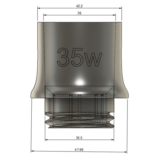 Średnica wewnętrza przejściówki jest zwężana od 36mm do 34,5mm dzięki czemu adapter jest uniwersalny dla końcówek o zewnętrznym standardzie średnicy 35mm i pozwala na montaż odkurzaczy od większości producentów, m.in. Bosch, Festool, Metabo, Starmix, itd.