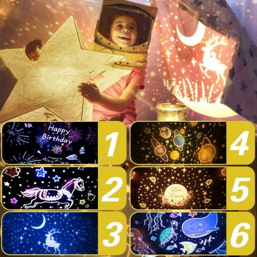 -Idealny prezent dla dzieci: lampka nocna to doskonały prezent dla dzieci lub partnerów. Niech nocne lampki rzucają ciekawe obrazy na ściany i sufit. Idealna jako dekoracja na urodziny, święta i rocznice. Może być również stosowany jako idealny dodatek do dekoracji wnętrz, takich jak romantyczne lampki nastrojowe, lampki nocne i lampki nocne.