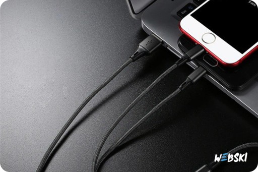 Mocny, pleciony, nylonowy kabel USB z trzema różnymi rodzajami końcówek Webski PRO Series.