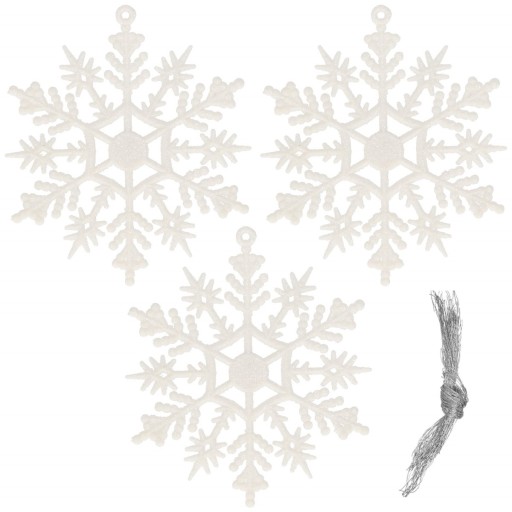 BOMBKI CHOINKOWE BIAŁE ZAWIESZKI ŚNIEŻYNKI 3szt OZDOBY NA CHOINKĘ DEKORACJA