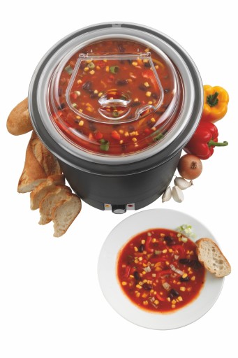 Przezroczysta pokrywka z poliwęglanu umożliwia w każdej chwili wgląd do wnętrza kociołka. Bez uciążliwego sprawdzania poziomu zupy lub sosu - bez niepotrzebnej utraty ciepła.