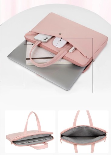 Etui wykonane jest z materiału wodoodpornego. Urządzenie wraz z ochroną wygląda estetycznie i świetnie komponuje się do każdej stylizacji (tej formalnej i tej nieformalnej). Nie musisz martwić się o zadrapania, bądź uszkodzenia mechaniczne, gdyż wnętrze wykonane jest z delikatnego tworzywa przyjemnego w dotyku. Torba będzie dobrym towarzyszem w trakcie podróży jak i w codziennych obowiązkach. Etui posiada dodatkowe przegródki w którym możemy zmieścić inne akcesoria takie jak telefon, portfel, słuchawki, mysz czy też rysik/długopis.