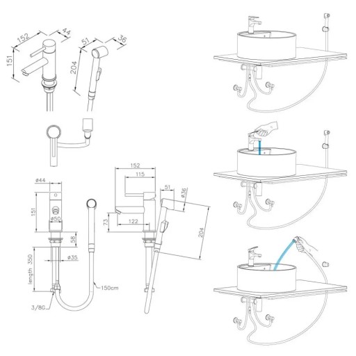 Wyposażenie: Prysznic bidetowy, Do małych umywalek