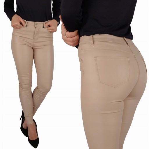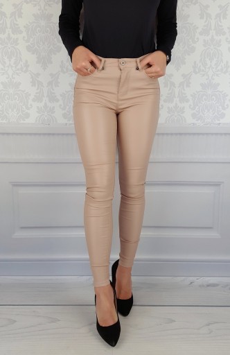 Świetne spodnie woskowane imitującą skórę, posiadają średni stan. Świetne do sportowego obuwia ale idealnie też sprawdzą się w połączeniu ze szpilkami, dzięki swojej uniwersalności, pasują niemal do każdej stylizacji. Elastyczny materiał podkreśla kobiecą sylwetkę. Spodnie są dopasowane, rozciągają się. Podkreśl swoje kobiece kształty! Spraw, by Twój codzienny Look był niepowtarzalny. Spodnie po obu stronach posiadają kieszenie.