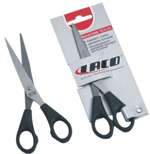 Nożyczki biurowe LACO z satynowym ostrzem ze stali nierdzewnej.