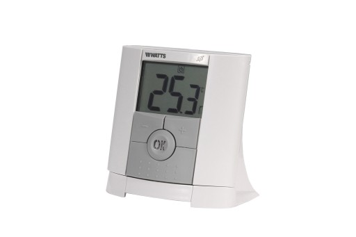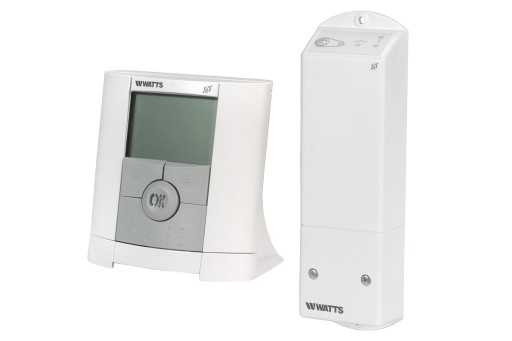 W zestawie z odbiornikiem Watts BT-WR02 RF. Odbiornik należy podłączyć np. do panelu grzewczego i zamontować na ścianie lub schować w suficie. Dzięki temu będzie można zdalnie sterować pracą panelu grzewczego za pomocą sterownika.