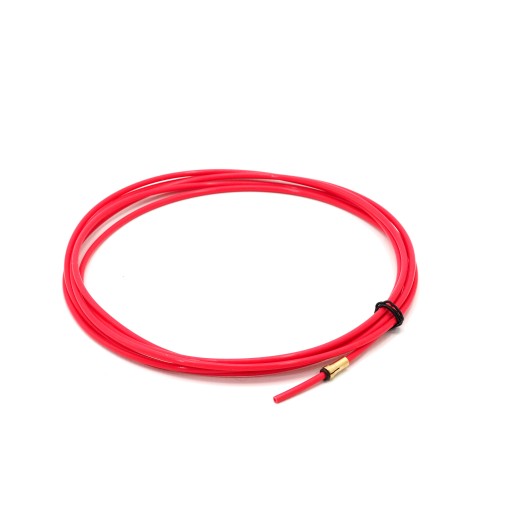 Czerwony wkład teflonowy prowadzący drut. Podstawowy element eksploatacyjny w uchwytach przeznaczonych do podawania drutów spawalniczych w metodzie MIG/MAG, dla drutów o większych średnicach.