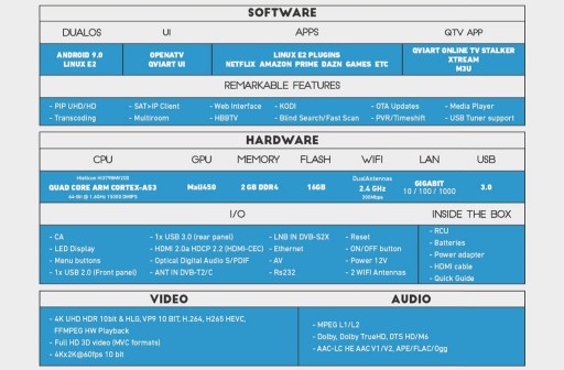 - Qviart DUAL OS E2+ Android 4K DVB-S2X/T2/C
