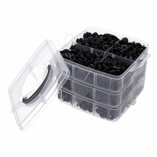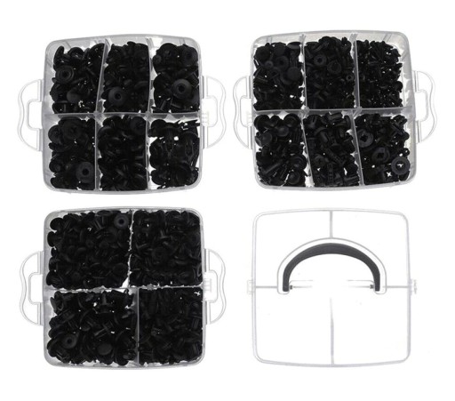 - Zestaw 625 ELEMENTÓW, w skład którego wchodzi 16 najpopularniejszych rozmiarów spinek mocujących. Zestaw został wzbogacony o narzędzie do usuwania klipsów.