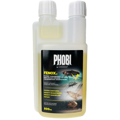 PHOBI FENOX EC to płynny koncentrat owadobójczy przeznaczony wyłącznie dla profesjonalnych użytkowników. Produkt przeznaczony jest do zwalczania owadów biegających (pleśniakowce lśniące, pluskwy, mrówki, karaczany); latających (muchy, komary, dorosłe mole spożywcze) oraz pcheł w higienie sanitarnej w pomieszczeniach takich jak: obiekty hodowlane, puste magazyny, farmy.