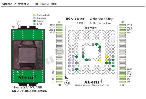 Oznaczenie XGecu: SN-ADP-BGA169-EMMC