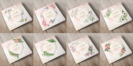 Zaproszenia ślubne, z kolekcji Geometryczne Serce z pięknymi kwiatowymi kompozycjami oraz geometrycznym kształtem serca. Zaproszenia ślubne drukujemy tylko na podstawie naszych szablonów graficznych dostępnych poniżej na wizualizacjach. Nie ma możliwości zmiany kolorystyki wzorów graficznych i czcionki. Zmienia się jedynie tekst personalizacji. Teksty można dowolnie edytować lub usuwać. Zaproszenia ślubne są drukowane w pełnym kolorze.