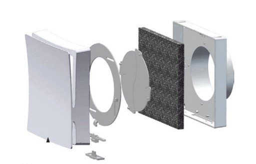 Nawiewnik składa się z 2 kratek wentylacyjnych (wewnętrznej i zewnętrznej) oraz okrągłego kanału teleskopowego.