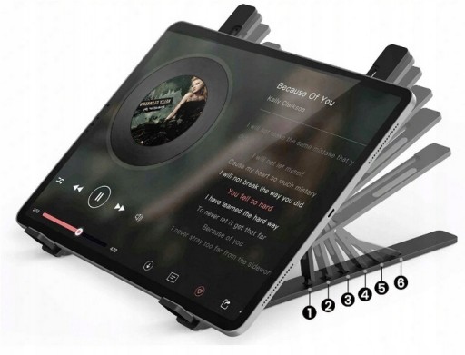- sześciostopniowa regulacja pozwala dostosować kąt nachylenia podstawki.