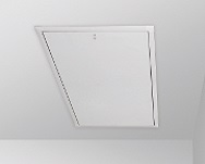 Schody nożycowe standardowo wyposażone są w białą klapę termoizolacyjną. Zewnętrzna powierzchnia klapy jest gładka. Na jej powierzchni nie są widoczne żadne elementy montażowe.