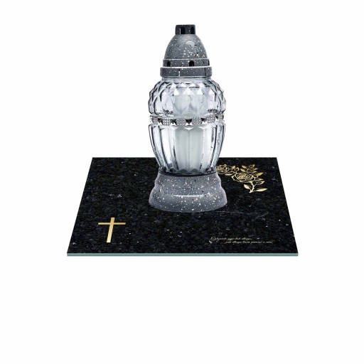 SZKLANA PODSTAWKA POD ZNICZE 40x40cm 496h + napis
