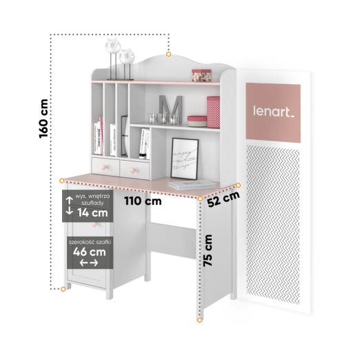 biurko do pokoju dziewczynki z nadstawką (model Luna LN-03 +LN-04)