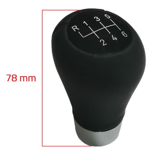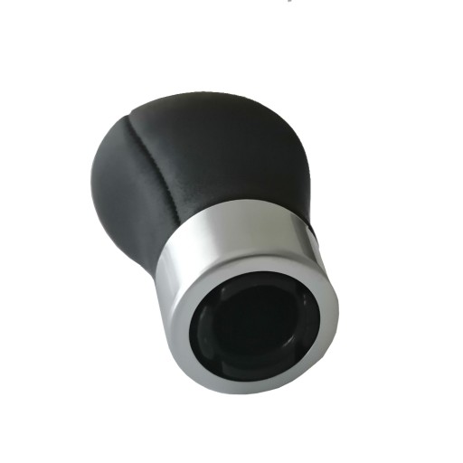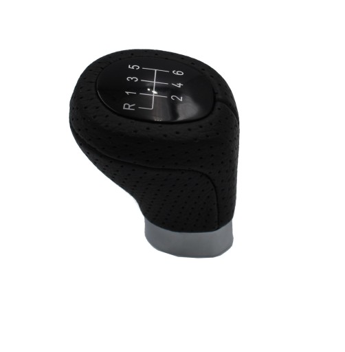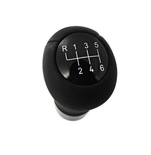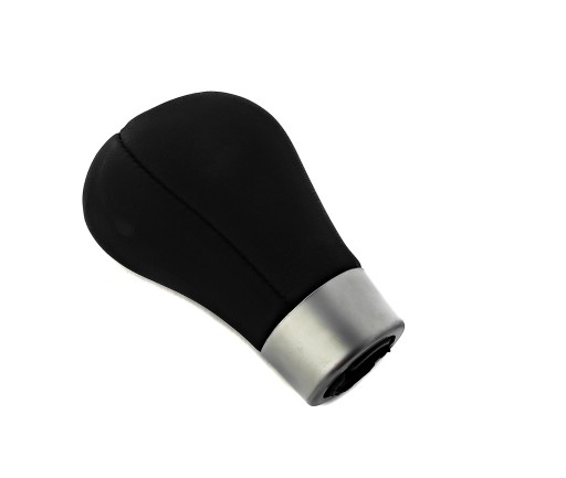 Wysokiej jakości zamiennik dedykowanej gałki zmiany biegów o kolorze czarnym z elementem chromowanym w skórze pikowanej.