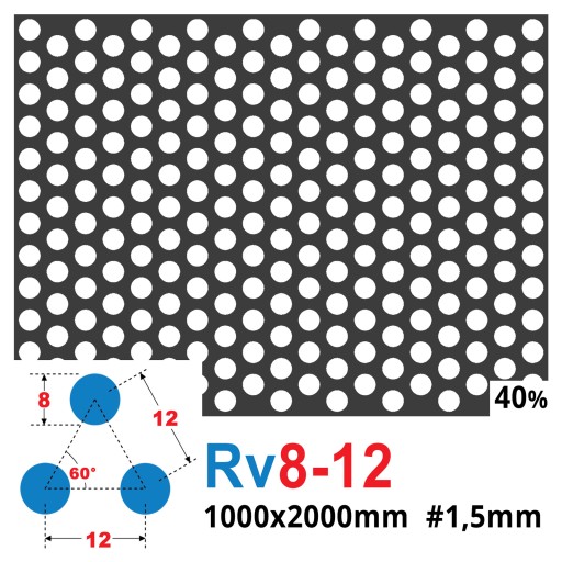 ПЕРФОРИРОВАННЫЙ ЛИСТ 1000 x 2000 Rv 8 - 12 КОЛЕСА 1,5