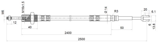 - Cięgno z gwintem M6x1 oraz korpus gwintowany M16x1,5.