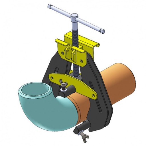 Kompaktowy, lekki, przenośny zacisk do szybkiego montażu rur i okrągłych kołnierzy do spawania doczołowego z przyciskiem zwalniającym.