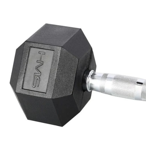 HEX PRO HMS - gumowane hantle sześciokątne. Treningi przy użyciu hantli z rodziny HEX PRO HMS pozwalają na powielanie niemal wszystkich rodzajów ćwiczeń, które wykonywane są ze sztangą. Jednocześnie dają możliwość pracy asymetrycznej - przy użyciu tylko jednego ramienia. Gumowane hantle są odporne na uderzenia, posiadają ergonomiczny kształt. Z kolei pewny uścisk gwarantuje radełkowana rączka.