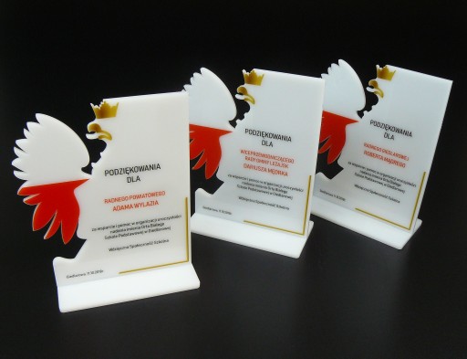 STATUETKA "ORZEŁ BIAŁY" Z PLEXI MLECZNEJ - 3 SZTUKI