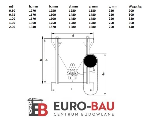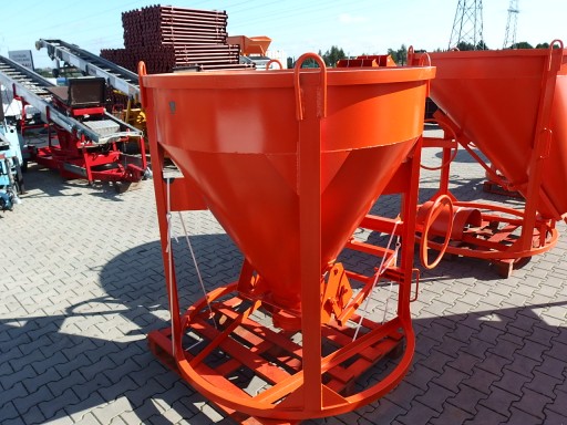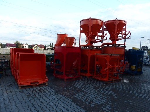 Pojemnik do betonu służy do transportowania masy betonowej i innych materiałów o podobnej konsystencji przy pomocy dźwigu.