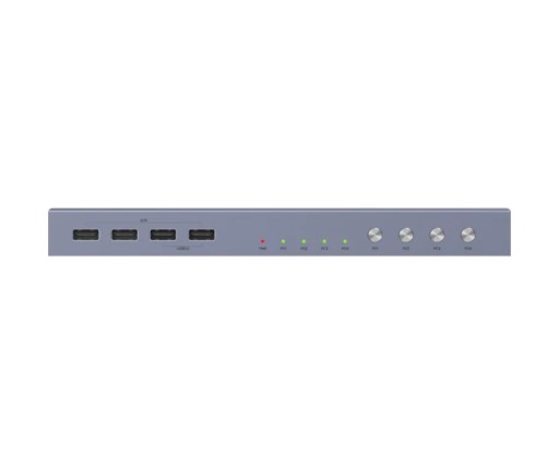Przełącznik KVM HDMI umożliwia sterowanie wyświetlanym obrazem aż na czterech komputerach za pomocą jednego przycisku. Aby cieszyć się rozszerzonymi możliwościami stanowiska pracy lub rozrywki wystarczy jeden monitor HDMI do zarządzania pozostałymi urządzeniami oraz cztery porty USB, znajdujące się w przełączniku.
