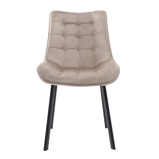 Siedzisko oraz oparcie zostały wykonane z płyty MDF, która obita jest tkaniną o welurowym wykończeniu. Krzesło posiada stabilne, metalowe nogi. Beżowa tkanina welurowa obicia cechuje się odpornością na uszkodzenia i przetarcia, a dodatkowo jest wyjątkowo przyjemna w dotyku. Materiał najlepiej czyścić wilgotną szmatką.